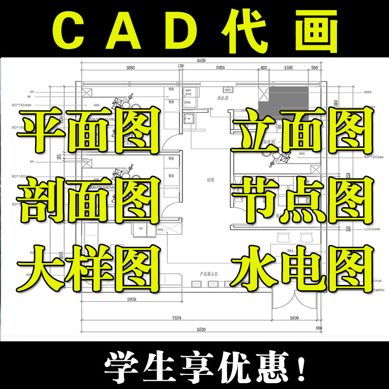CAD代画审批图PS彩色平面图立面剖面节点大样装修施工广告牌施工热门设计联盟服务商