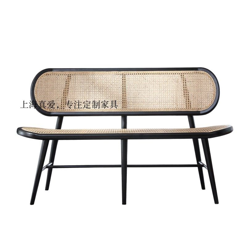北欧简约实木藤编双三人沙发中古藤艺民宿阳台户外婚纱摄影休闲椅热门设计联盟服务商