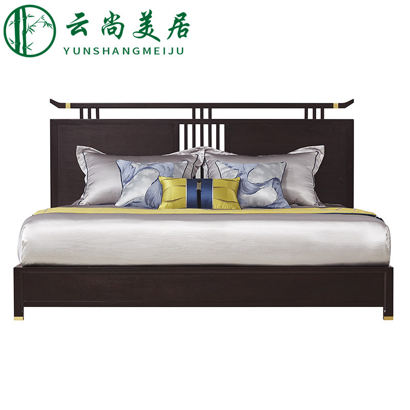 新中式实木双人床简约民宿样板房小别墅轻奢五星级酒店家具厂定制热门设计联盟服务商