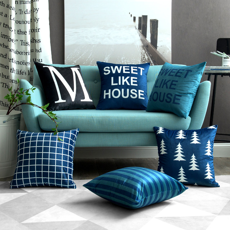 北欧美式样板房装修设计沙发抱枕地中海床靠垫靠包黑白绿几何条纹热门设计联盟服务商