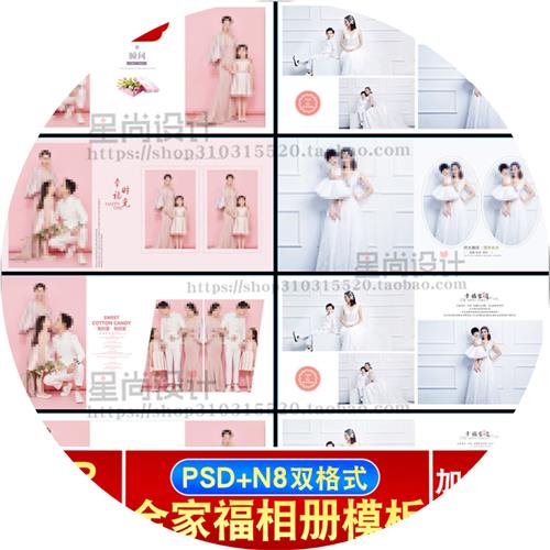 亲子2022新全家福相册模板PSD新品N8时尚影楼后期沛PS素材方版热门设计联盟服务商