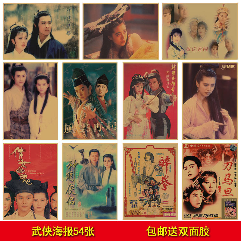 香港武侠电影海报王祖贤林青霞复古牛皮纸饭店酒吧咖啡厅装饰墙画热门设计联盟服务商